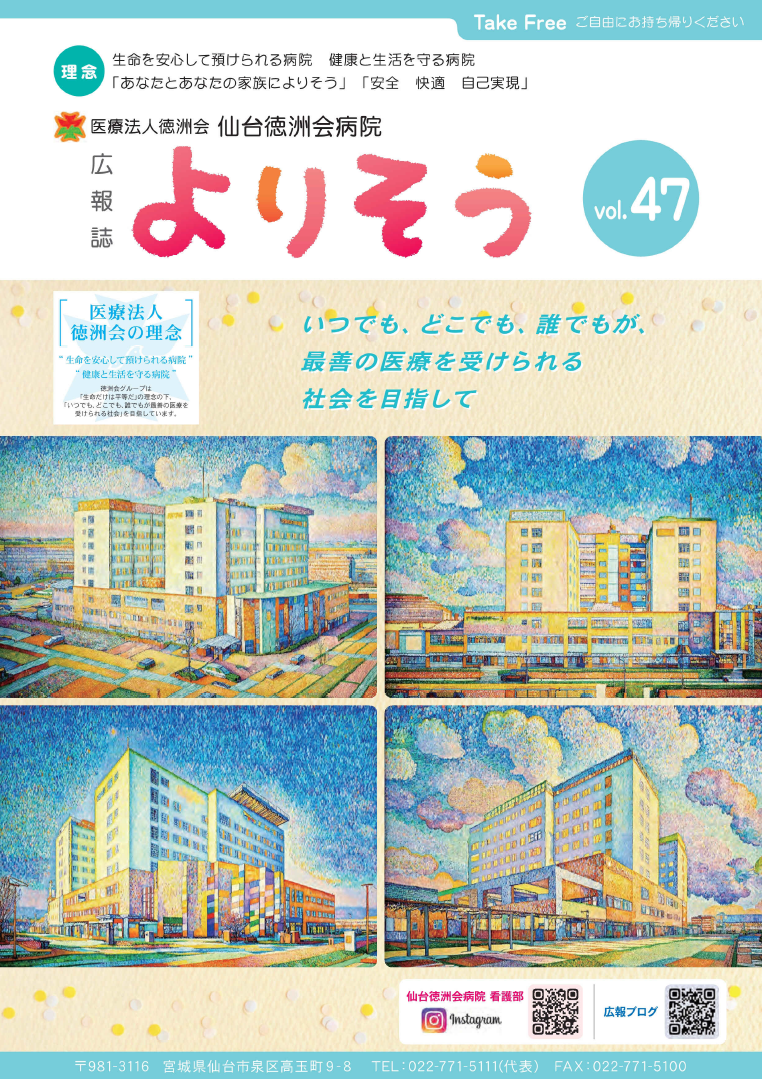 当院では患者さまや地域の方々、ご来院の皆さま向けに毎月広報誌「よりそう」を発行しております。